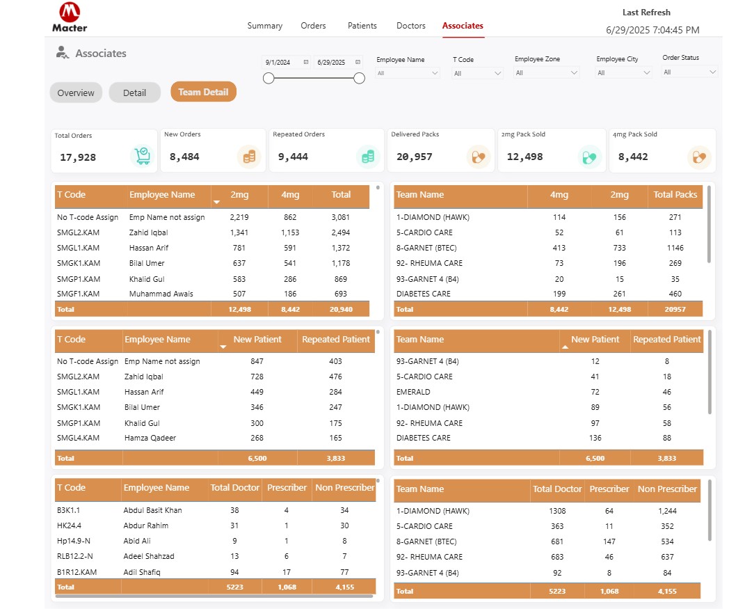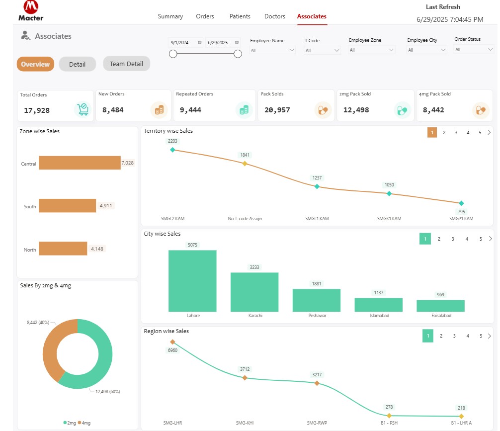 - Key Features: Patient communication tracking, medication order management, doctor performance analytics, patient drop-out analysis, multi-channel follow-up system, sales reporting by demographics